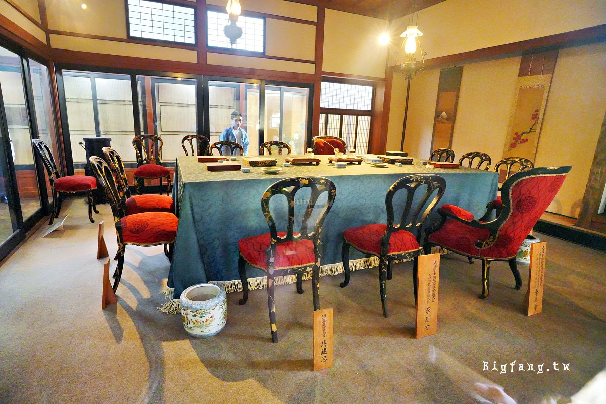 進入館內後,最吸睛的就是正中央重現的談判會場。這裡擺放了當時實際使用的桌椅、墨寶和燈具。你可以看到李鴻章與伊藤博文當時坐的位置。