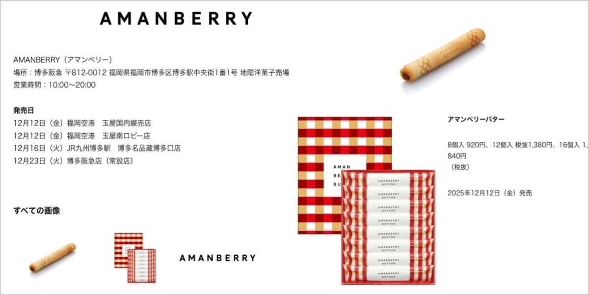 日本新聞 AMANBERRY 在2025年12月12日推出全新商品,且會多了JR九州博多駅 博多名品蔵博多口店 這一個販售地點,有興趣的人不妨留意一下。