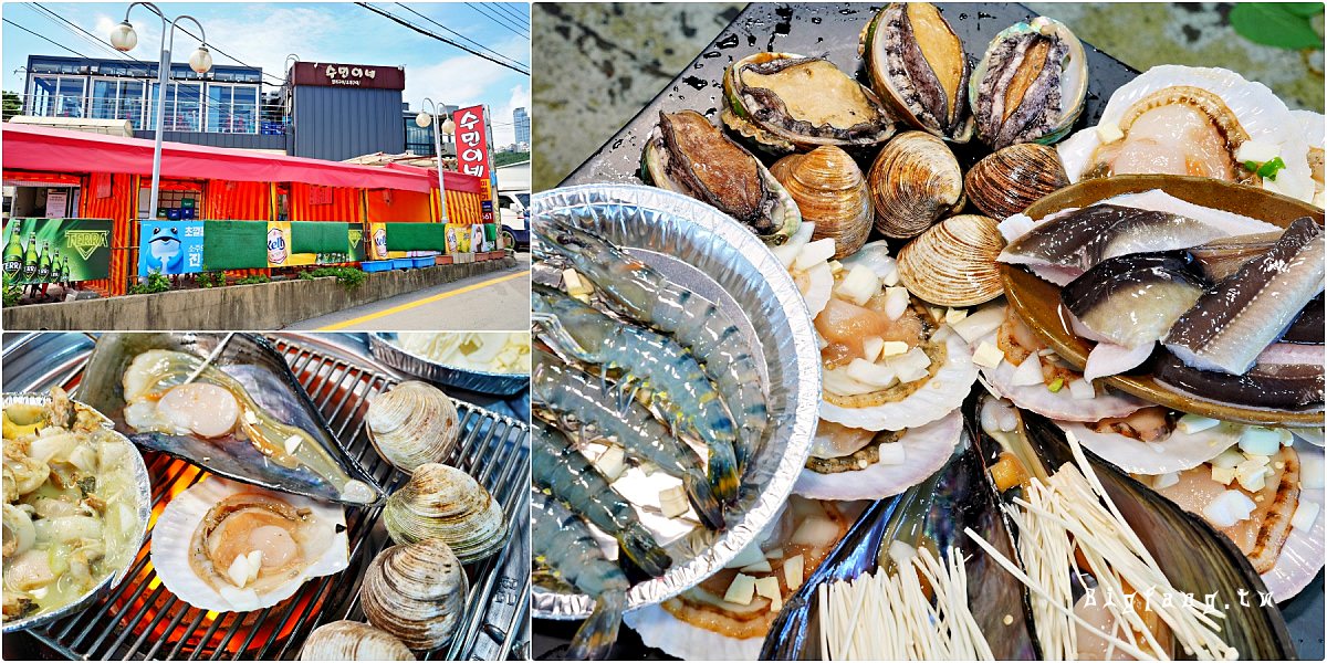 搭乘海雲臺 Blueline Park 天空膠囊列車來到青沙浦站,找海鮮美食?不妨來位在港口旁的青沙浦烤貝一條街報到,大方挑戰評價很好的「秀敏家炭火烤蛤蠣」(수민이네) 提供新鮮蛤蠣、扇貝、鮑魚等,菜點必點招牌綜合海鮮烤貝套餐,份量大又平價。而且店員幫大家烤好,並加入洋蔥、金針菇和奶油燜烤,鎖住鮮味。餐廳有室內座位和戶外帳篷區,可邊吃邊看海景和紅白燈塔。走路就能到青沙浦站,交通方便。也很受觀光客、韓國在地人歡迎~想找好吃美味不貴、交通方便的青沙浦美食,推薦秀敏家啦~