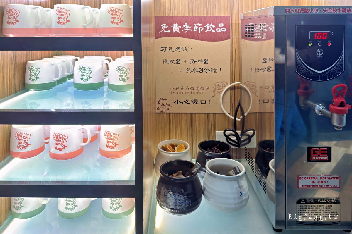 - 免費飲品與貼心服務:內用提供免費的洛神陳皮熱飲無限暢飲,為重口味的餐點提供了很好的平衡。外帶時可向店員索取免費的龍骨高湯,回家後可再利用