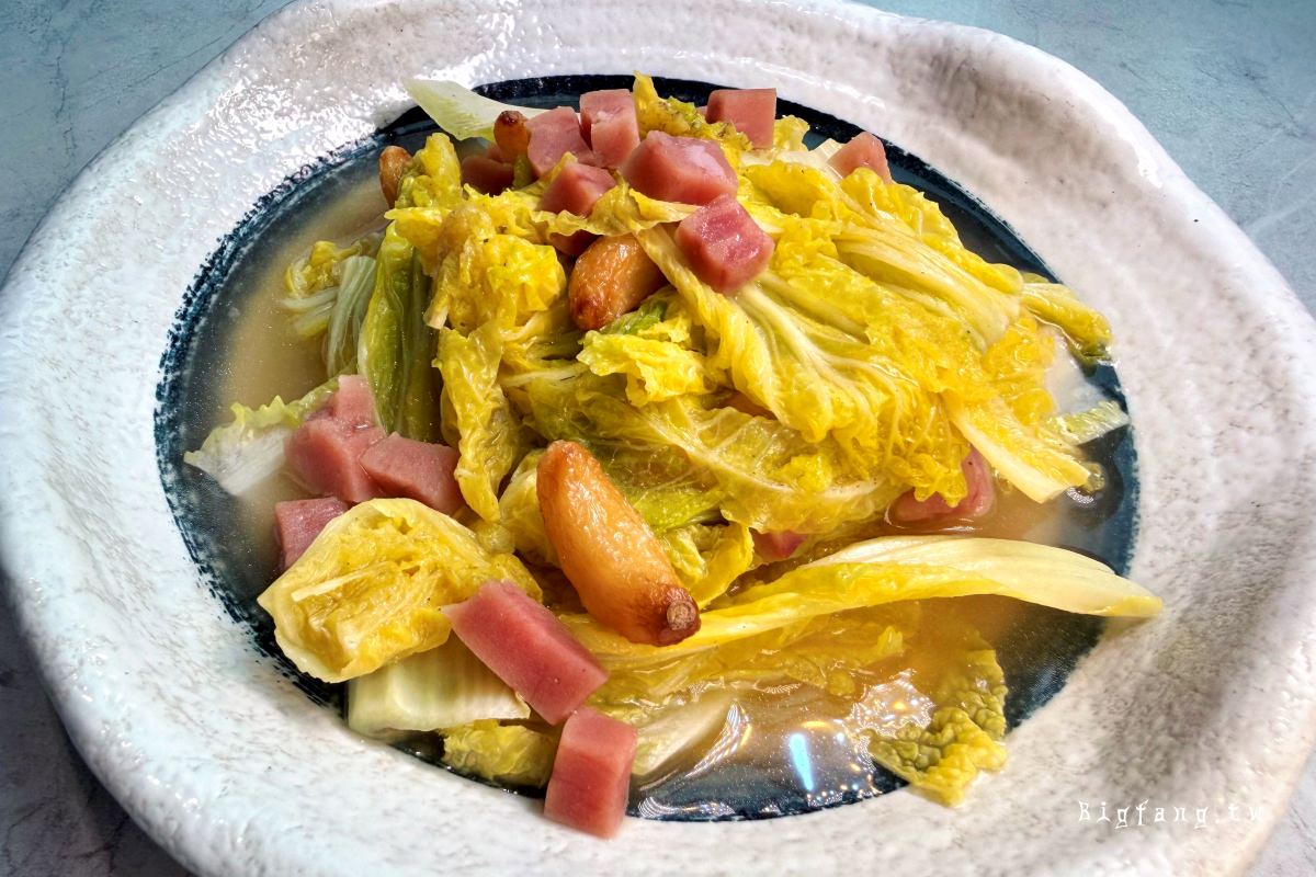 - 母湯娃娃菜:以趣味菜名吸引目光。用上湯煨煮的娃娃菜口感軟嫩,並以火腿和炸蒜頭提味,味道濃厚下飯。