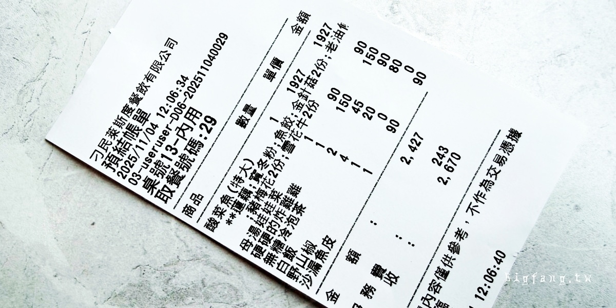 其實刁民酸菜魚很適合愛挑戰重口味的朋友前來享用,酸菜魚味道夠酸、夠麻,非常過癮,巨大份量一上桌就很有氣勢,很適合跟朋友一起分享。不過可能大方跟家人期望過高了些,覺得味道還不錯、份量也算足夠,但沒有感覺到那種誇張的好吃!不過西門町開到凌晨02:00,也很適合夜貓族來報到啦~