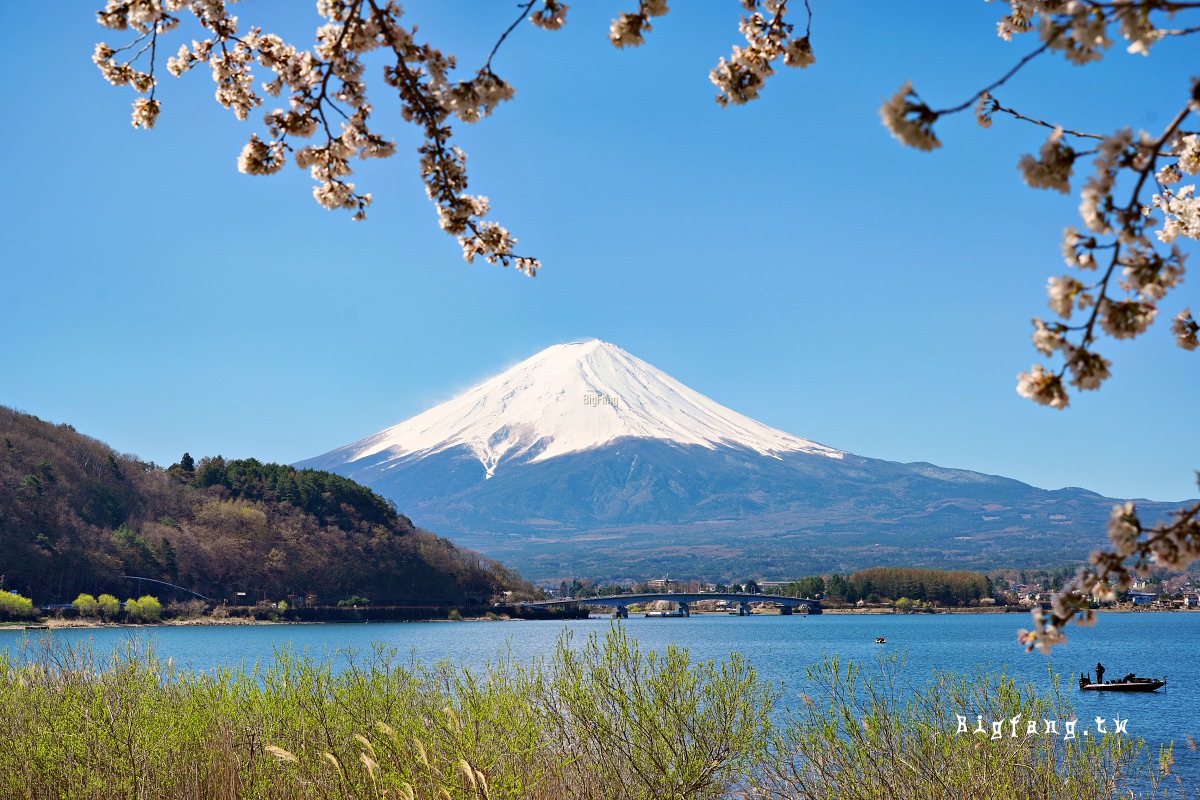 - 能一次欣賞到富士山、櫻花與湖景的絕美組合。