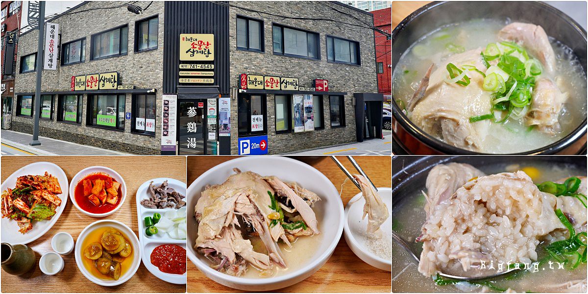 距離海雲台傳統市場走路約3分鐘的 名品海雲台蔘雞湯 (해운대소문난삼계탕),以交通方便、服務人員親切、環境乾淨舒適出名,是這一帶挺有人氣的蔘雞湯。