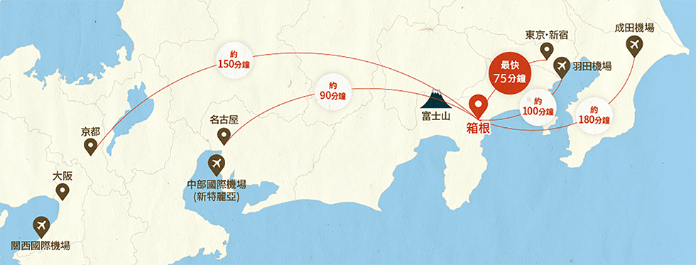 - 便利的東京交通:箱根距離東京非常近,交通十分便利,車程約90分鐘,很適合當日往返或短期住宿泡湯。
