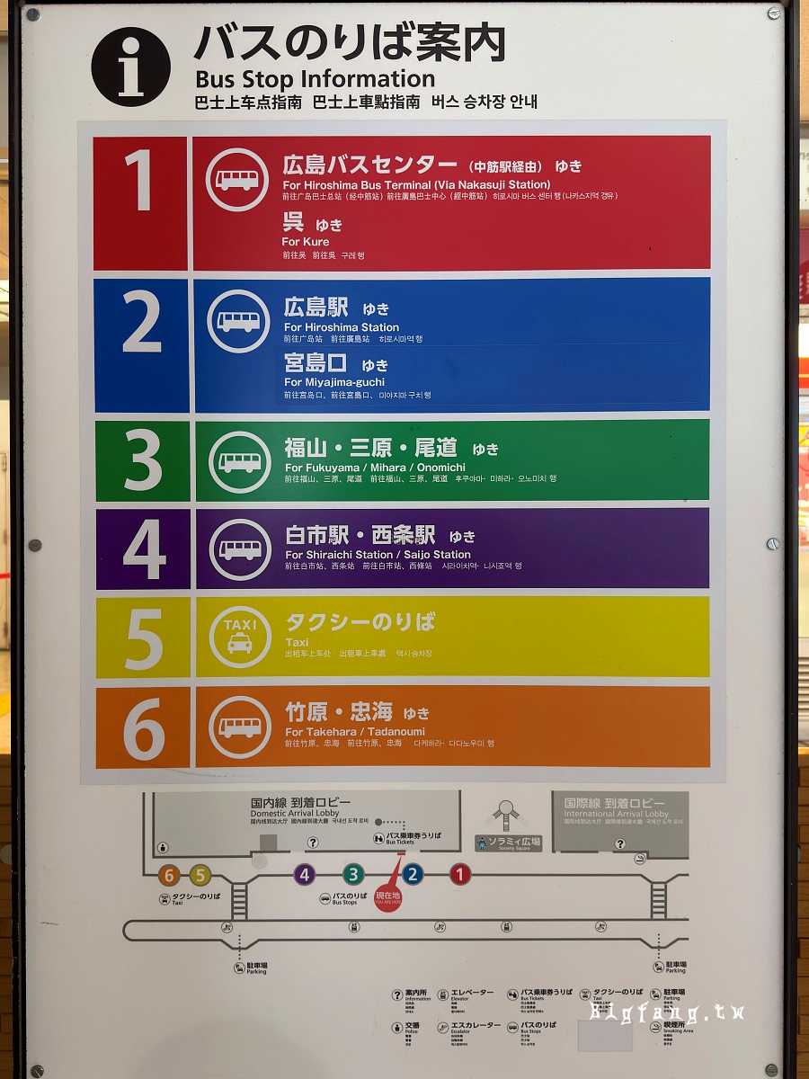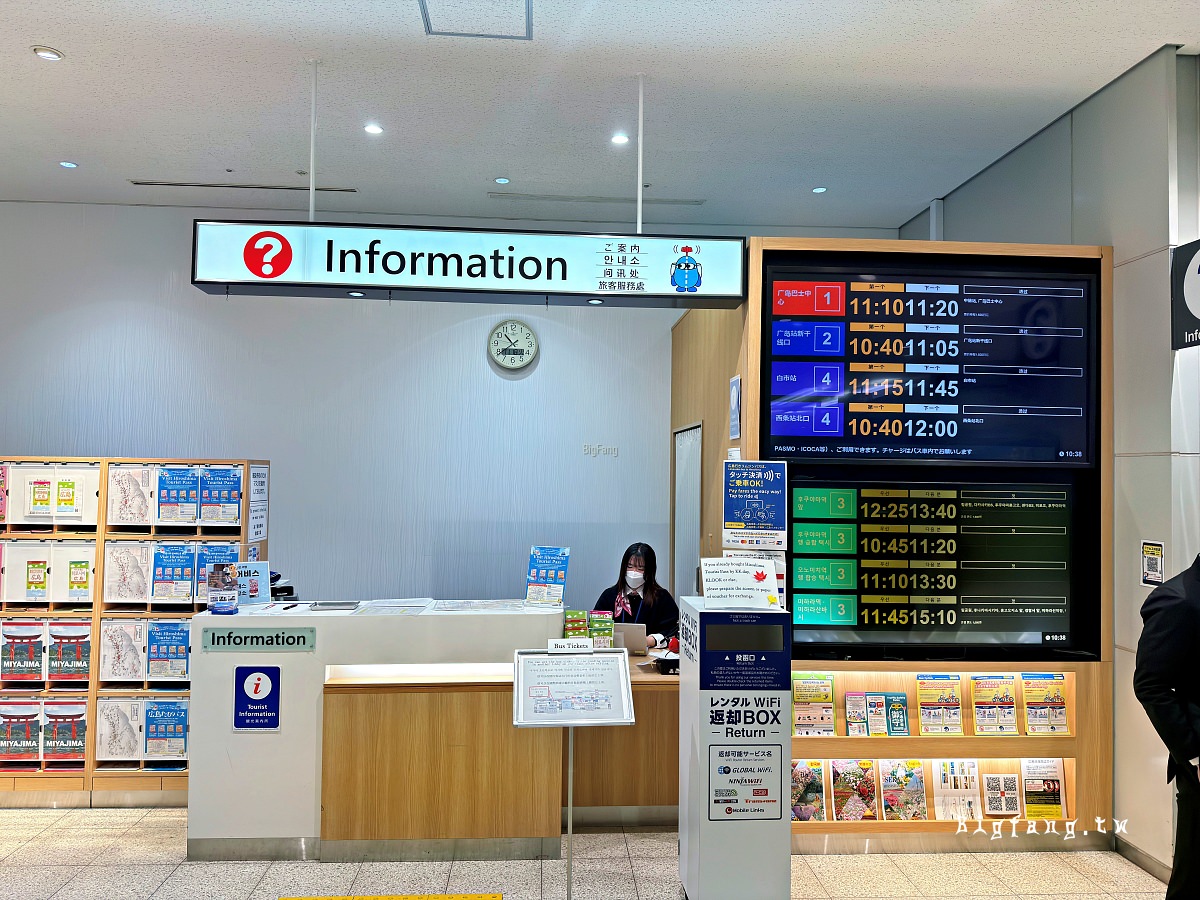 出海關後,會先看到 Information 服務台,右方有巴士開車時間表,但這邊不能買票,只能詢問廣島旅遊問題。