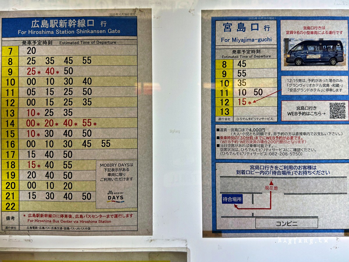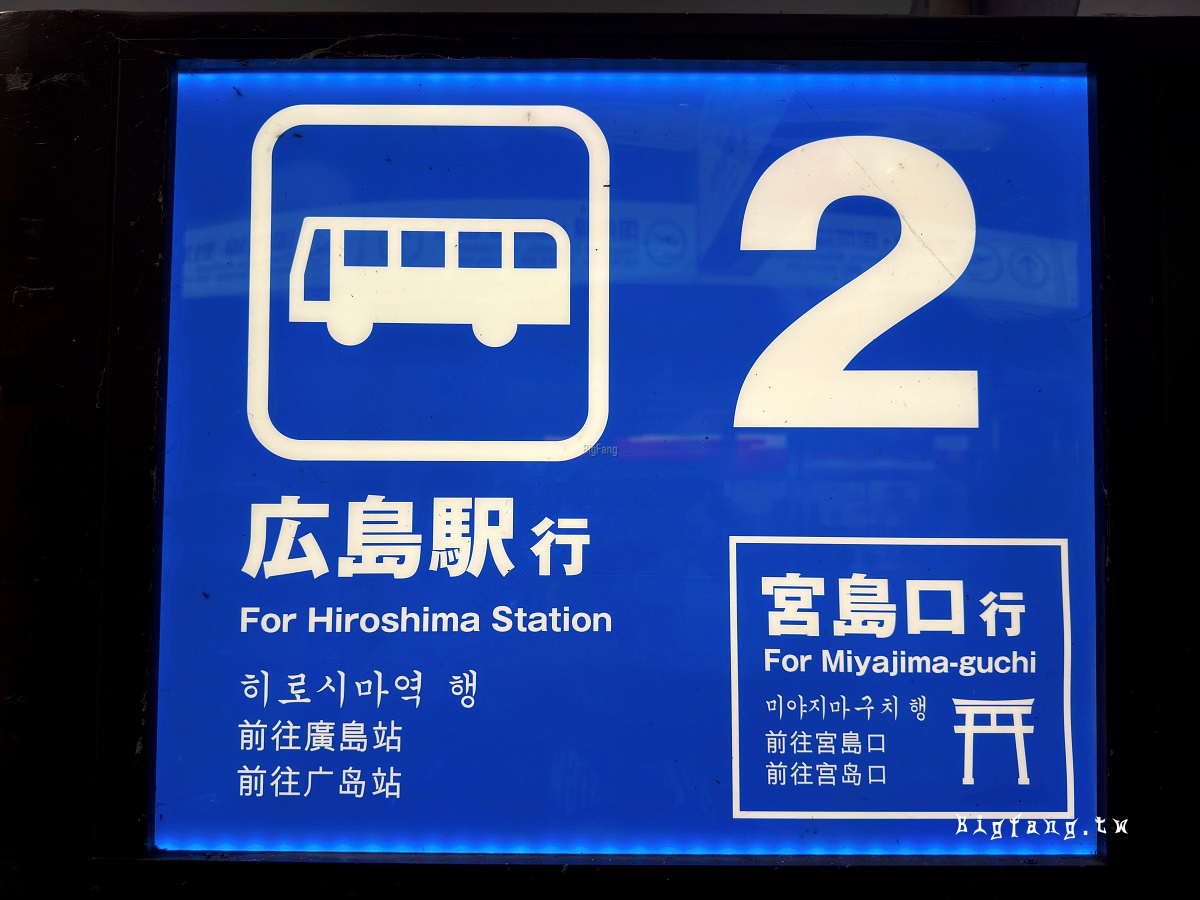 2號月台除了能到廣島車站外,也能到宮島,只是宮島班次少,像是那種9-12人座的車接送,大方就沒研究啦。