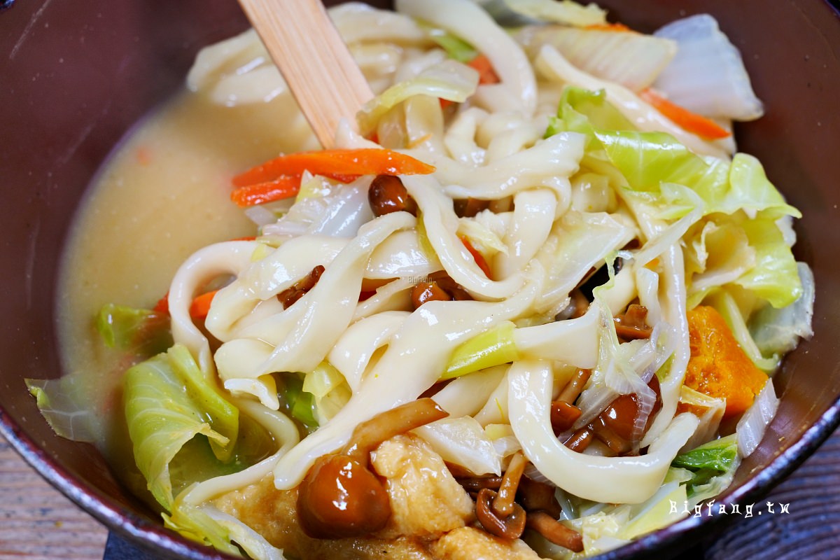 店家的招牌必點,湯頭以味噌為底,加入南瓜、香菇、白菜、紅蘿蔔等大量蔬菜一起燉煮。南瓜的甜味融入湯中,讓湯頭帶有自然的甘甜。