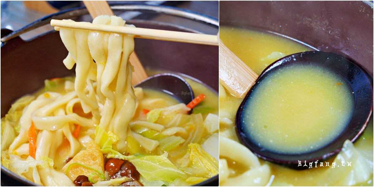 麵條是手工揉製的寬麵,口感Q彈有嚼勁。燉煮後麵條會釋放澱粉,讓湯頭變得濃稠。整鍋麵熱騰騰的,特別適合在寒冷的天氣裡吃。