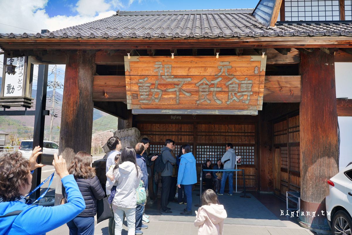 說到富士山河口湖當地鄉土美食料理「ほうとう」,有好幾間受歡迎的名店!大方挑戰的這間傳統日式獨特挑高的木造建築「餺飥不動茶屋」( Houtou Fudou / ほうとう不動 河口湖北本店),以自家製的有嚼勁餺飥/烏龍麵條,搭配南瓜、白菜等當地新鮮蔬菜,並在濃郁的味噌湯中慢煮,湯頭鮮甜,另外還有馬肉料理,都是讓人回味無窮的山梨縣在地特色美食,頗受觀光客歡迎,在冬季用餐高峰時,更是一位難求啊!