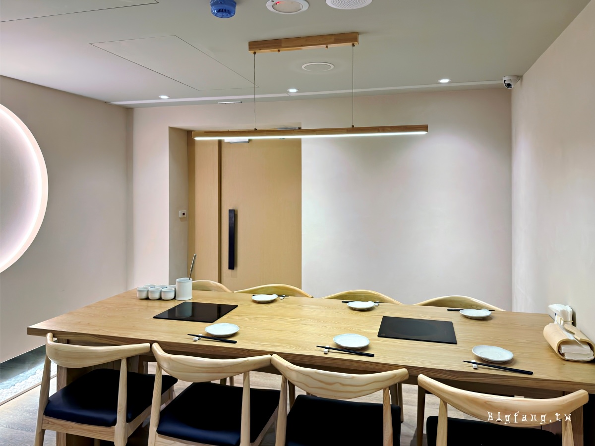 餐廳的質感不錯,相當明亮,有吧台座位、四人桌,還有包廂座位;我們這次有六位前來、被安排到到包廂,據說有低消NT$ 16000。但我們一行人還是被安排進包廂。