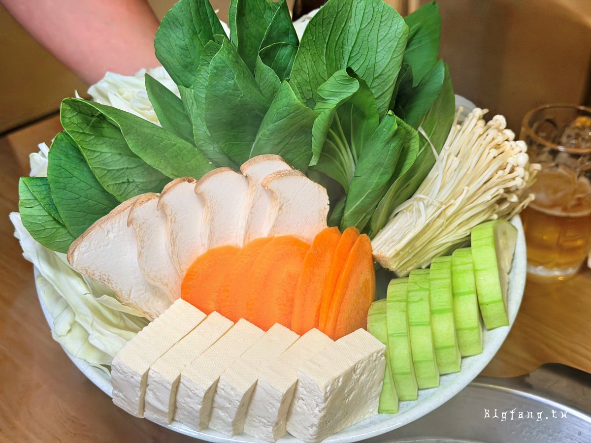 壽喜燒也有個菜盤!其實吃到這邊,都有不少飽足感了,這個壽喜燒菜盤,根本吃不完,造成浪費!建議店家可以將菜盤更精緻減少些,可以把成本添加到肉片去。