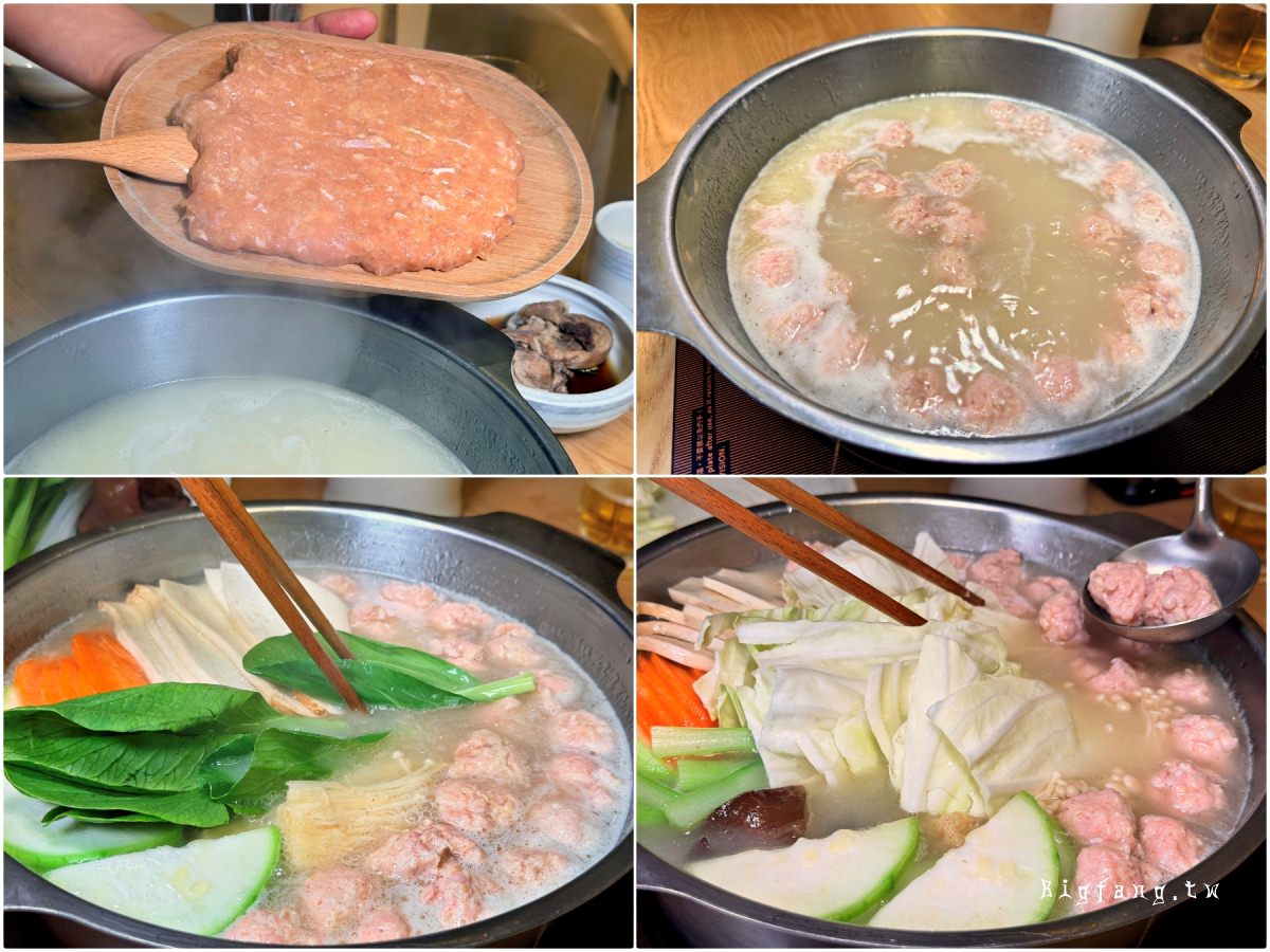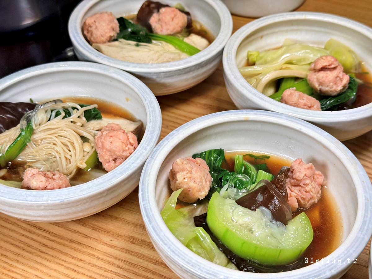 雞肉丸算是其水炊鍋中的一大亮點。這些雞肉丸使用新鮮的黑羽土雞肉製作,肉質鮮嫩,口感滑順,並且在湯底中煮熟後,能夠吸收湯汁的鮮美,讓每一口都充滿雞肉的清甜味道。再搭配剛菜盤的金針菇、白菜和豆腐等一同煮煮,提昇了湯頭的鮮味。另外也會留下幾顆雞肉丸,會煮到壽喜燒鍋。