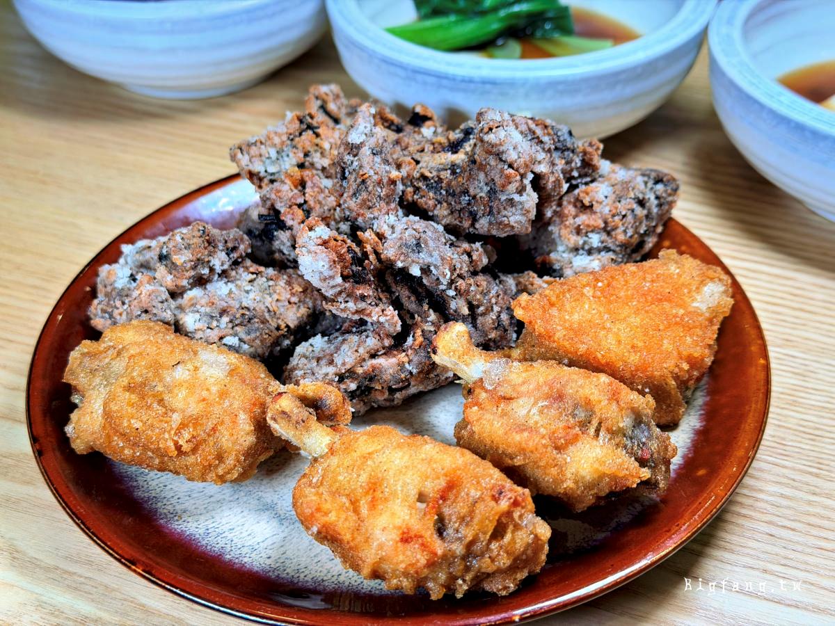 套餐搭配的炸物,黑的應該是醬油醃口味,炸的極酥,挺好吃的!再來是一般的小炸雞翅,風味也很不錯。