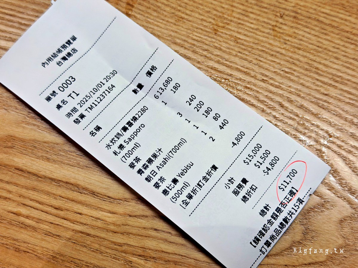 六個人吃下的價格,由於之前有付了每人訂金800元,所以結帳時會減掉。