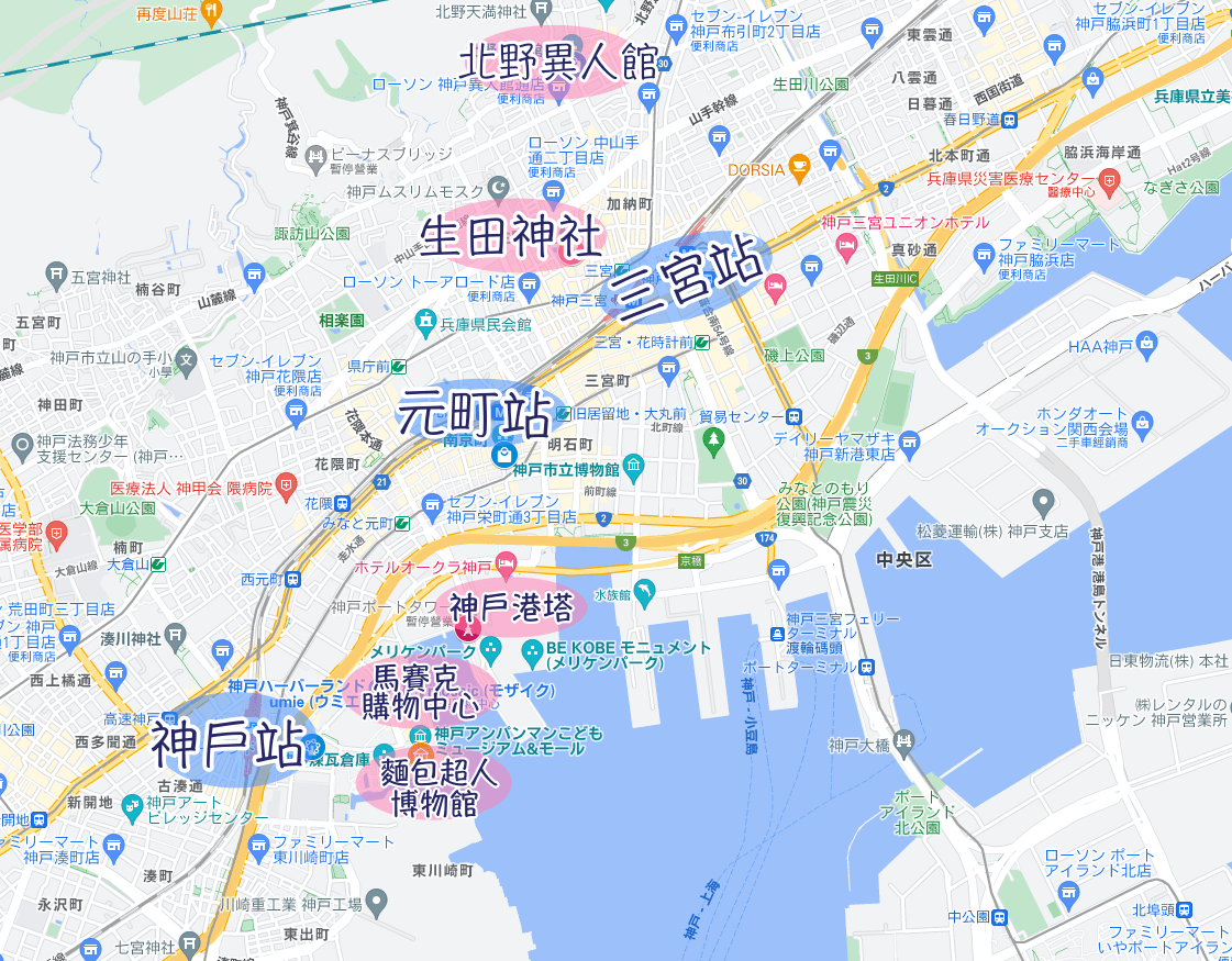 - 利木津停靠站:六甲島(神戸灣喜來登酒店)、神戸三宮、新神戶(神戶ANA皇冠假日酒店)