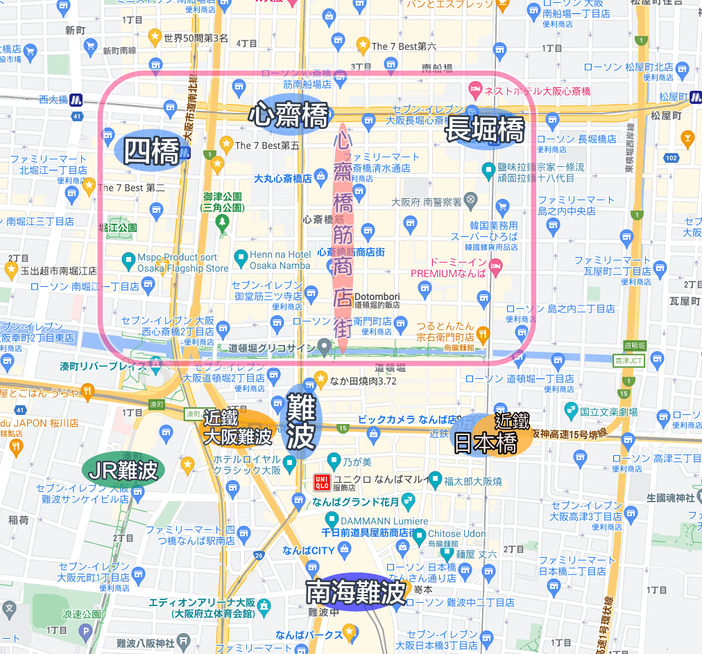 - 走路可到心齋燆、美國村、道頓堀,轉乘近鐵、南海電鐵都很近。