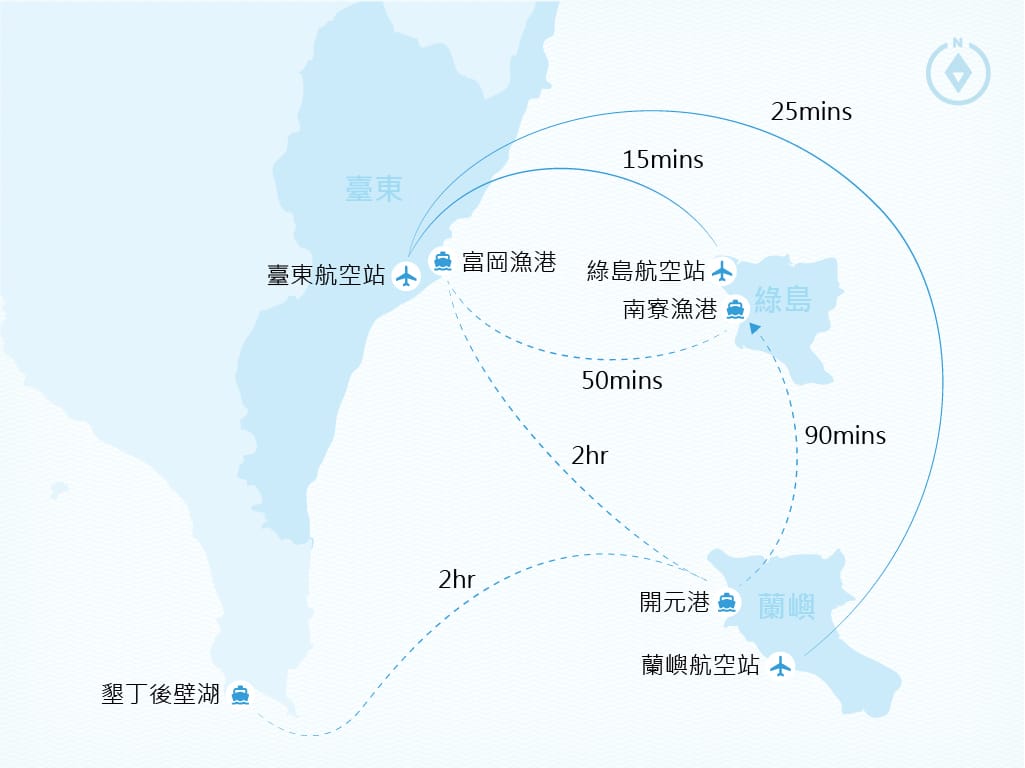 - 搭飛機:從台東機場搭乘小型飛機,飛行時間約15分鐘,不過票價較高且需提前預訂,而且易受天候影響。