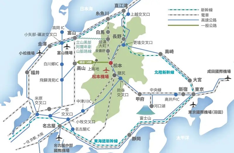 - 交通便利:松本車站是交通中心,JR線、松本電鐵、長途巴士都在這裡交匯。