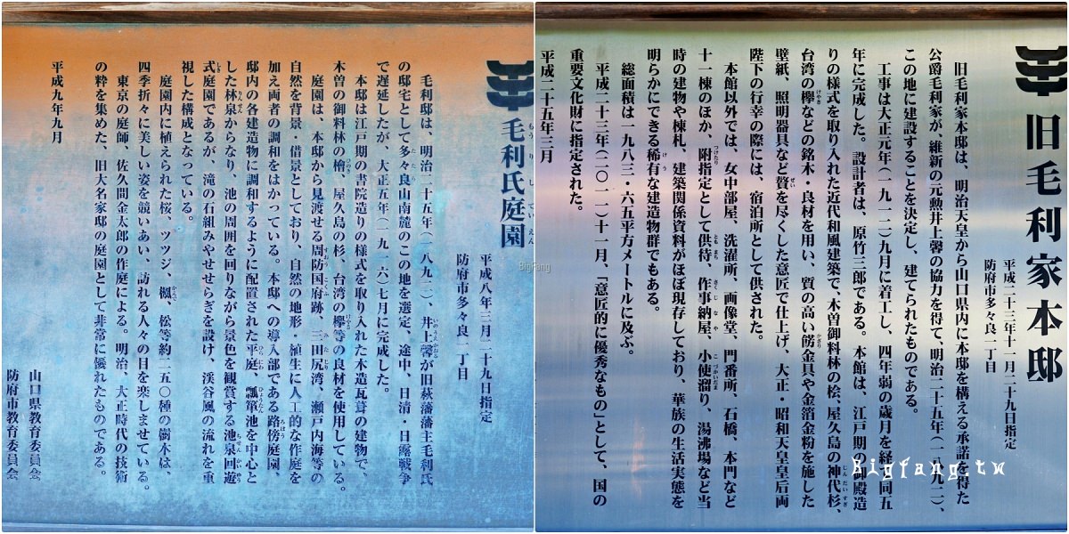 舊毛利家本邸是由以前統治山口縣的「毛利家族」在明治跟大正時期蓋的大房子。這不只是普通的住家,而是一棟結合了居住、招待客人和展示歷史寶物功能的豪宅。