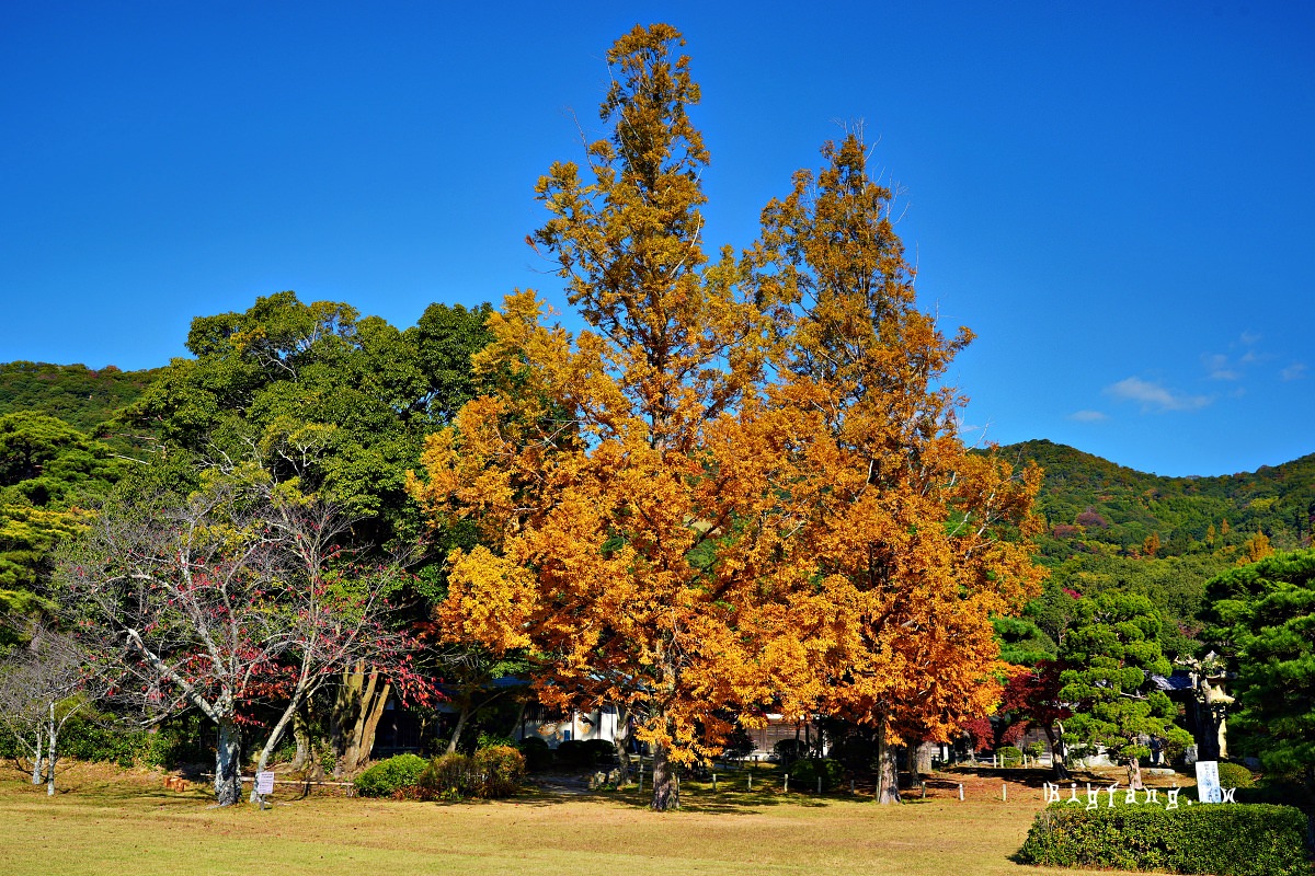 山口縣的毛利氏庭園挺大的,景觀也挺不錯的,不過似乎園方對於清理枯葉的速度慢了些,有些地方拍起來就沒那麼漂亮,不過這邊除了走走庭園,拍拍楓葉與櫻花之外,博物館的古董展示,似乎也挺受日本人的歡迎;如果你也在安排山口縣賞楓自駕旅,時間足夠的話,不妨可以排入行程唷。