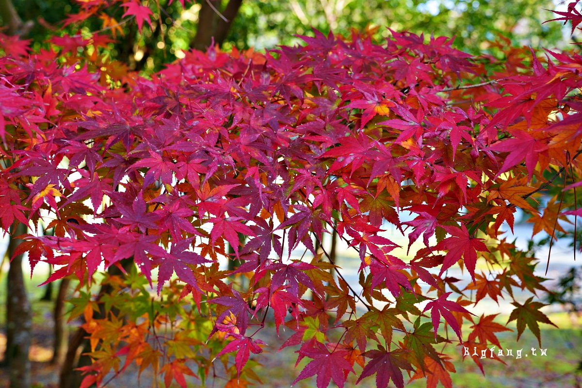 沒陽光時,楓葉拍起來較沒層次感,但還是挺美的。