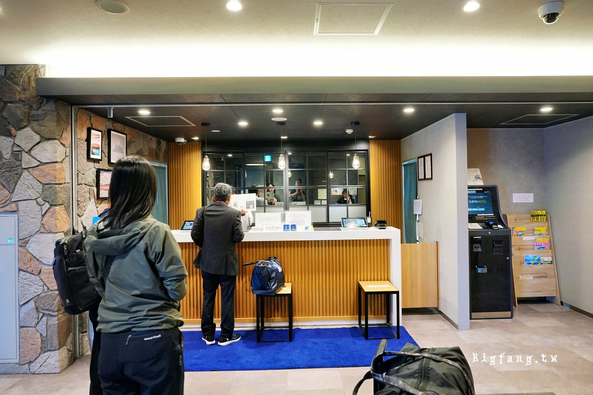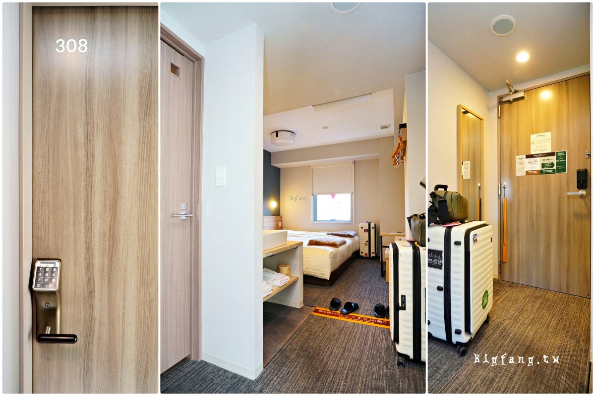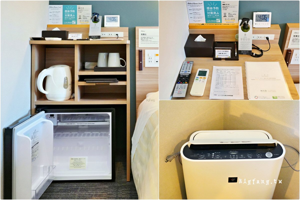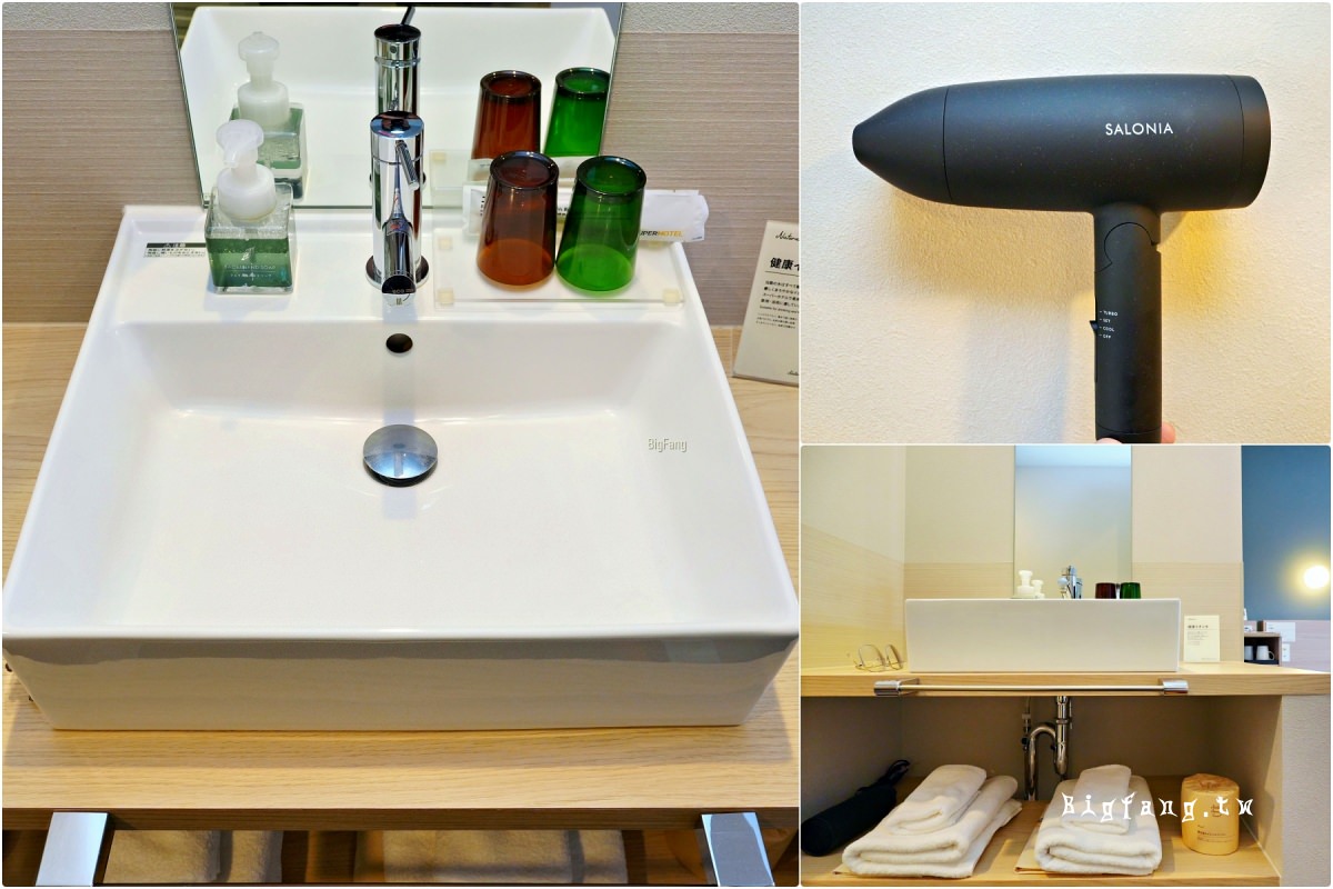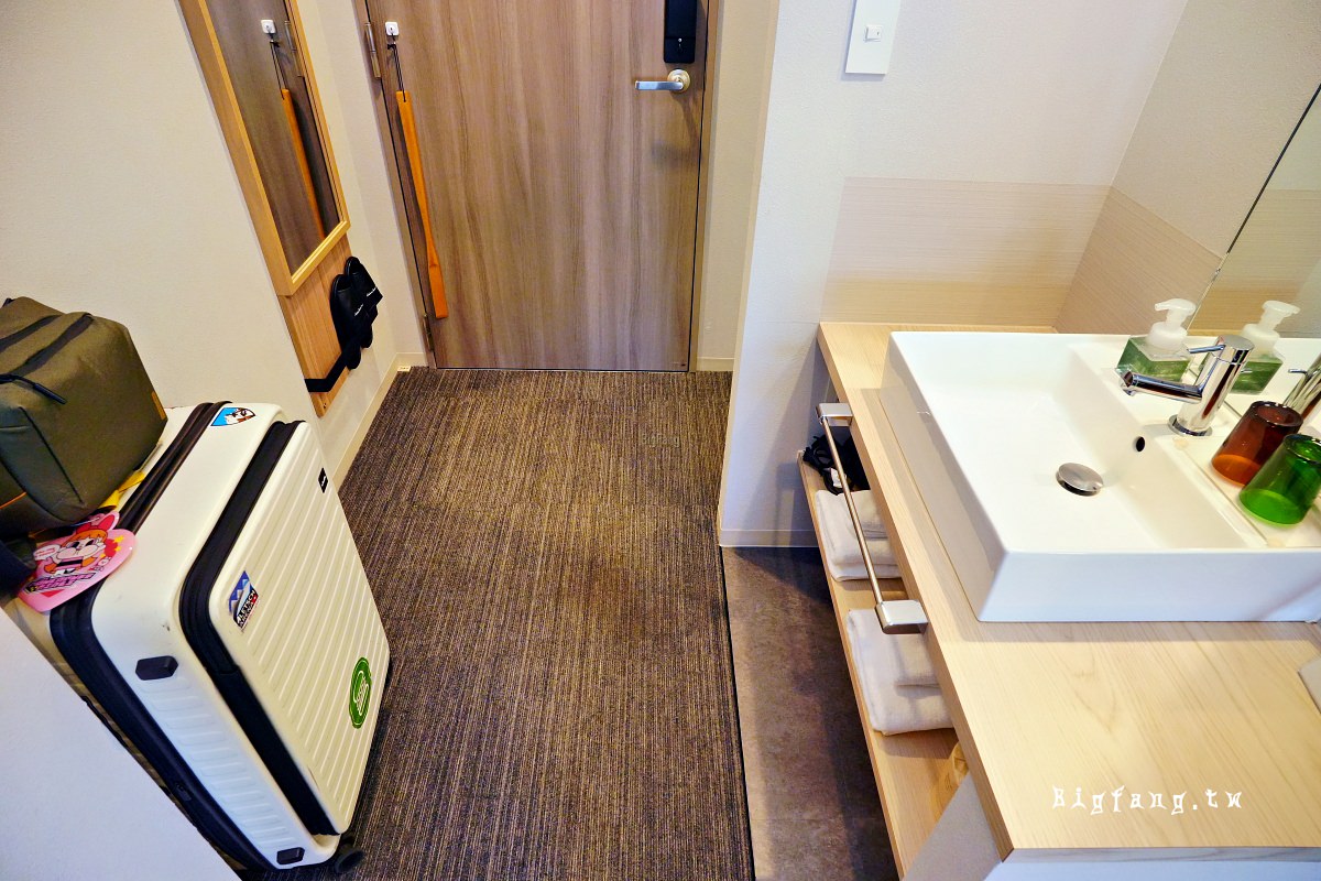 入住 Super Hotel 時就知道房間挺小的,要攤平大行李就有點難度。照片是門口的玄關+洗手枱。