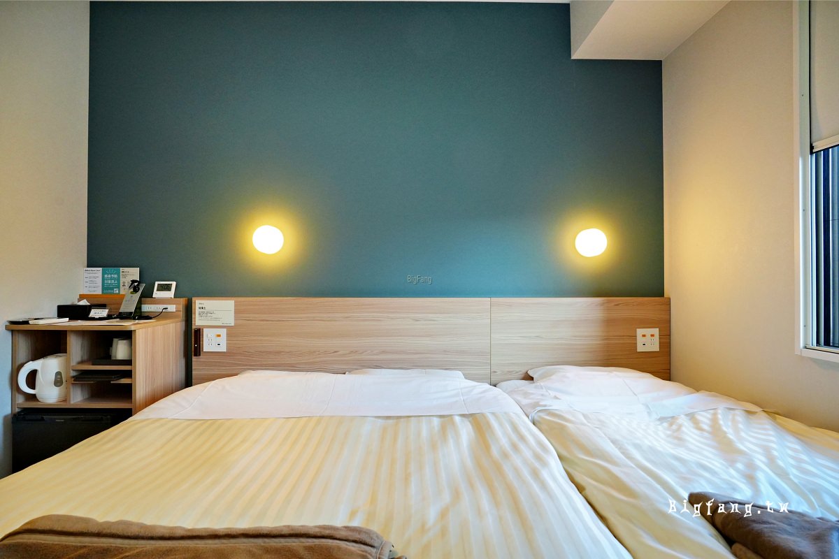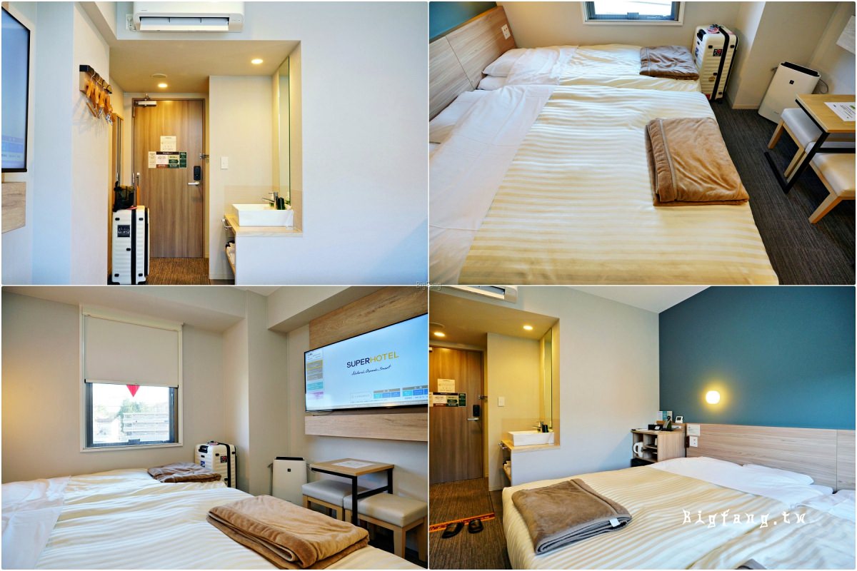 Super Hotel 都以單人房為主,TWIN雙床房非常少,這間飯店的TWIN雙床房還分2種,我們住的這間是150cm中床+90cm寬的單床,另一種TWIN雙床房則是 90cm寬單床x2張。2種雙床房,房間大小都是 16.8㎡。 (看房價)