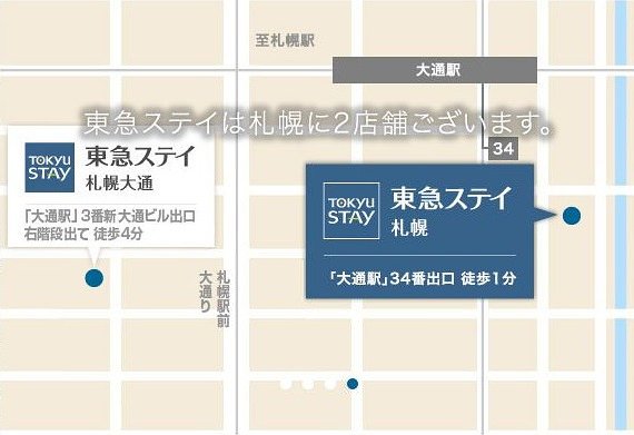 東急STAY札幌大通位於札幌市中心最繁華的「大通/薄野」之間,狸小路商店街旁,鄰近三越百貨、札幌PARCO、丸井今井等大型百貨公司,位置棒、交通便利。