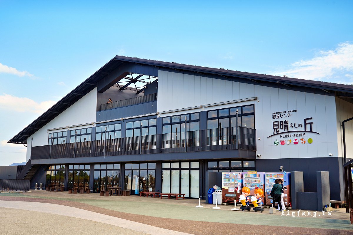 由於我們是開車自駕,就想來到砂丘附近的高點,沒想到誤打誤撞來到有鳥取砂丘觀光吊椅纜車連結的「砂丘中心 見晴之丘」(砂丘センター 見晴らしの丘),這邊比較像是一個休息站,有販售許多伴手禮,也能在這吃飯,三樓還有個展望台,不過展望台不能看到砂丘全貌。