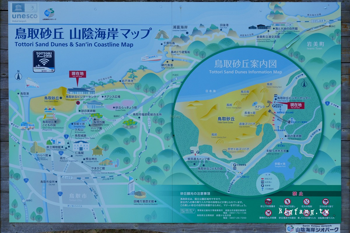 - 巴士: 在 JR 鳥取站前的「0 號乘車處」搭乘巴士。搭到「鳥取砂丘(砂丘會館)」站下車,時間約 20 分鐘。