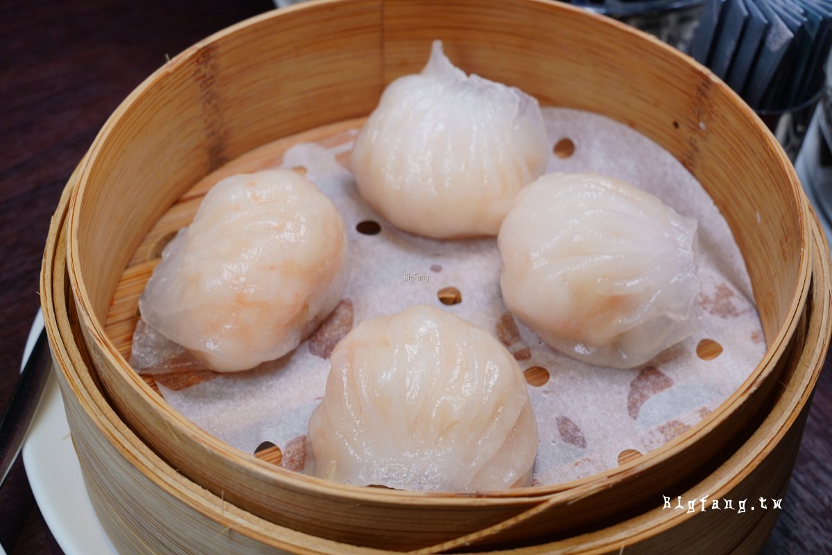 蝦餃外皮薄透,內餡鮮蝦大粒,爽口彈牙,味道鮮美,是考驗點心師傅功力的經典菜色。