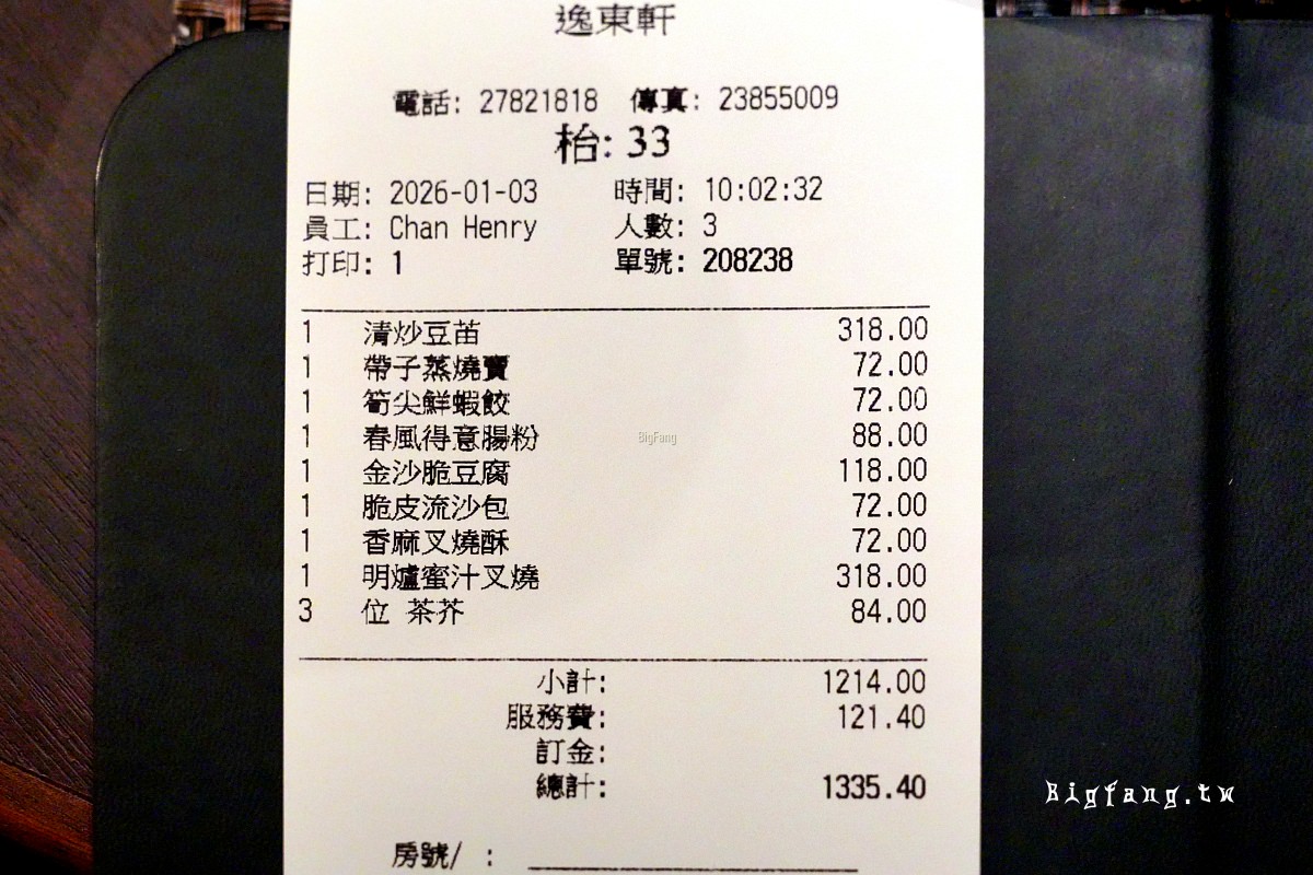 當天的消費明細。由於我們是吃中餐,還點了貴貴的菜色,像清炒豆苗的價格跟明爐蜜汁叉燒價格一樣,真的有點被嚇到啦;如果只吃港點的話,價格比起一般港點店,價格也是偏高些,但真的挺好吃的,大方下次來會只點港點啊~
